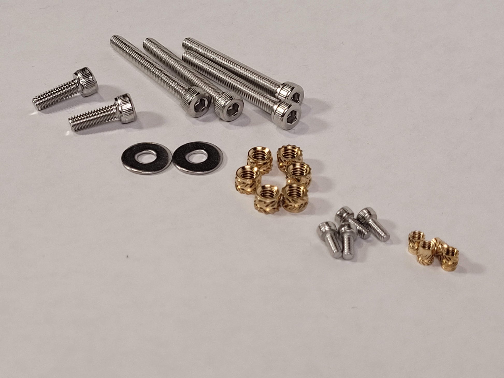 All the bolts, washers, and hot-melt brass inserts for one complete Giant Squid. *Note - some parts are incompatible with the 1.2 version of the 52pi LPP Giant Squid.