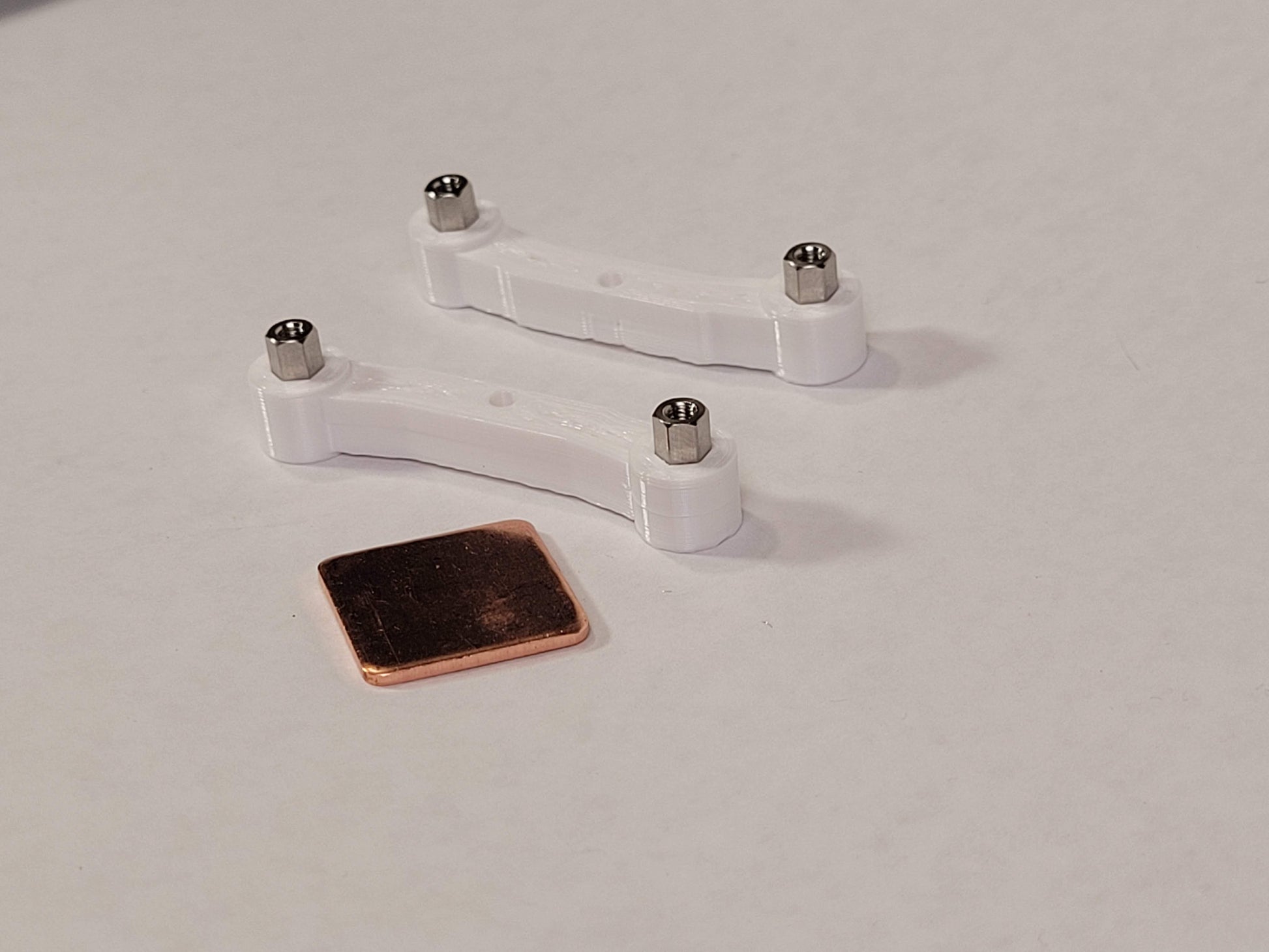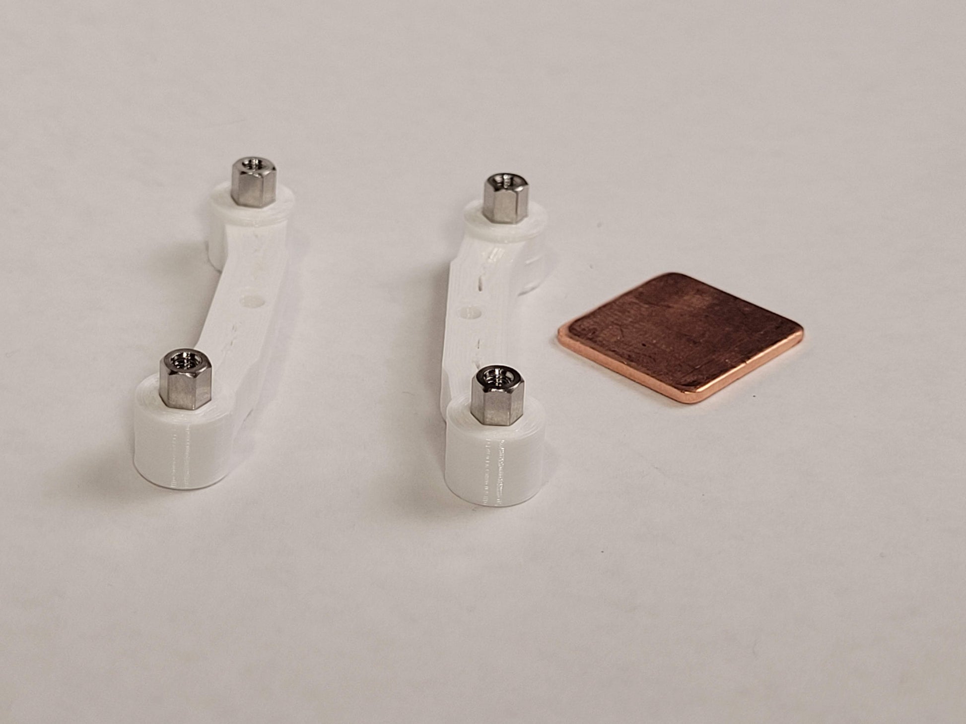 A custom-designed mount that is easier to install, does not limit cooling, and looks great! The mount is printed in strong, heat-resistant PETG at 100% infill (it's literally solid PETG). Also included is a very large, very thick solid copper shim to dramatically improve heat transfer from the ASIC to the heatblock of the 52pi LPP. The shim is large enough (20 x 20mm) to span ALL FOUR copper pipes of the heatblock (when placed diagonally). Most shims on the market cover only two pipes, and are much thinner. The custom PETG mounts are specially designed for the 1.5mm thickness of the shim.
